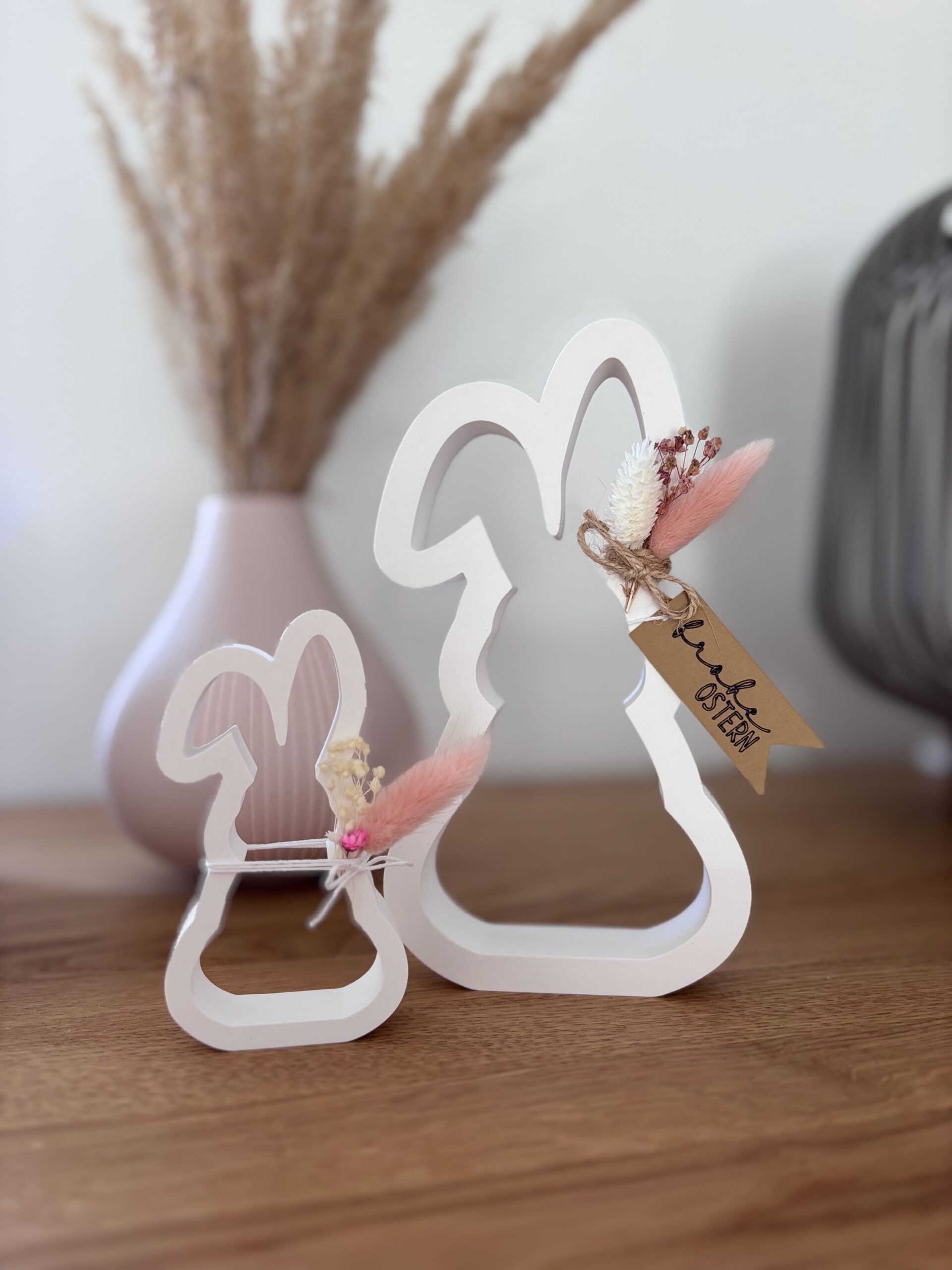 Ob als dekoratives Highlight für dein Zuhause oder als liebevolle Geschenkidee zu Ostern – dieses Hasenpaar sorgt garantiert für ein Lächeln.